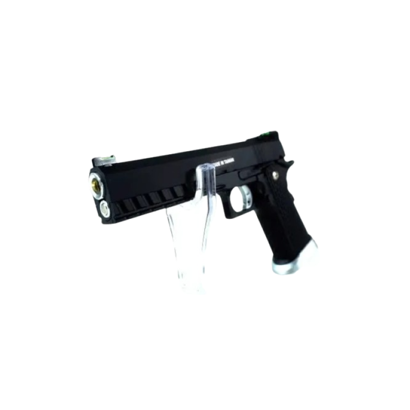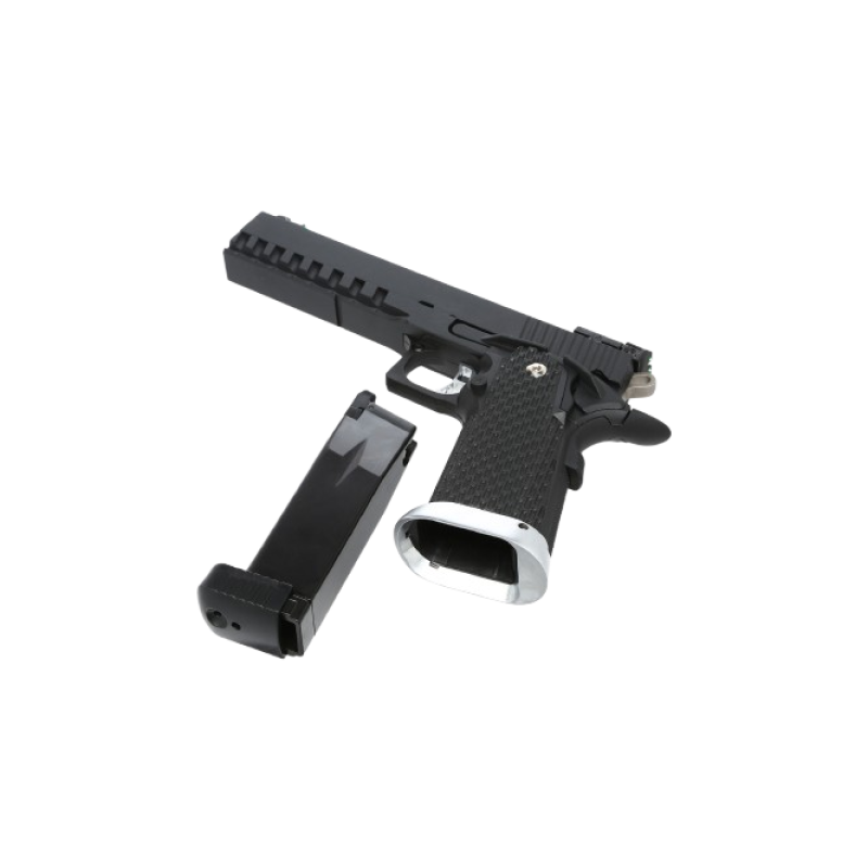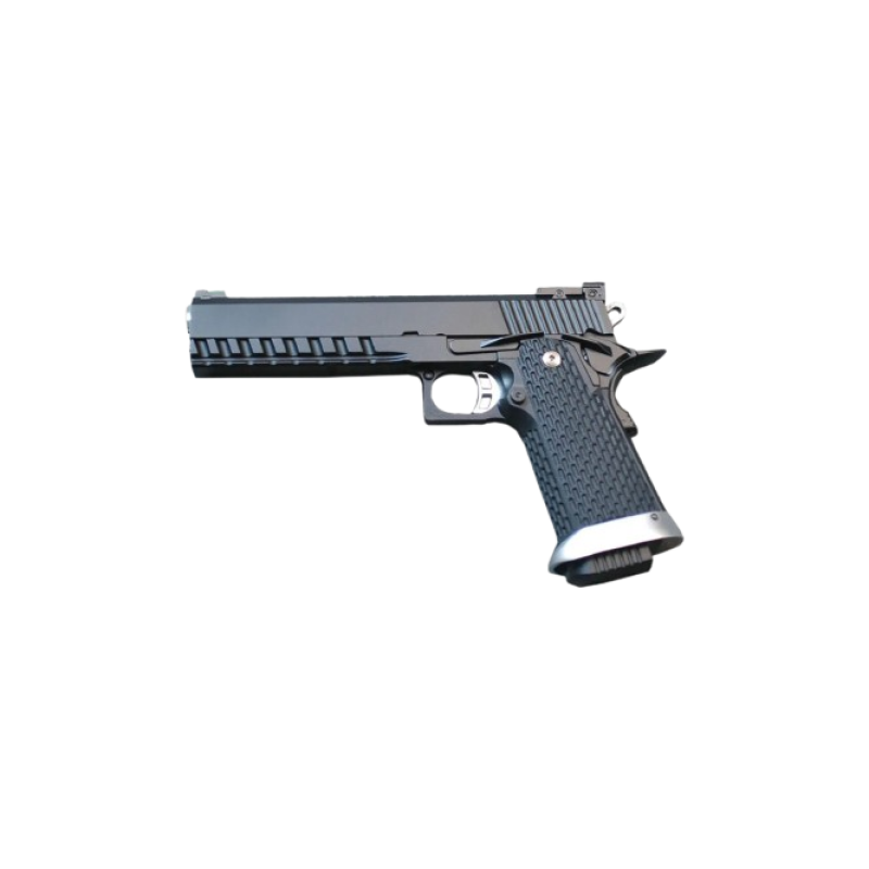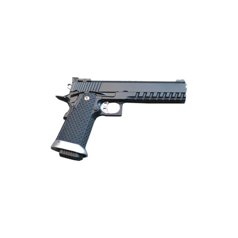 The KJW KP-06 HICAPA is a high-performance gas blowback pistol, designed for speed and precision. Its extended mag well and adjustable sights make it a top pick for competitive airsoft shooters.