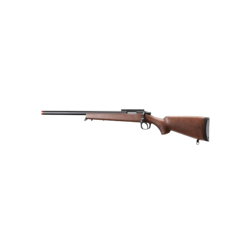 The D BELL VSR-10 Wood Design is a reliable bolt-action sniper rifle, known for its classic wood finish and consistent performance. Perfect for long-range engagements, this airsoft replica offers impressive accuracy and build quality, making it a great choice for both beginners and seasoned snipers.