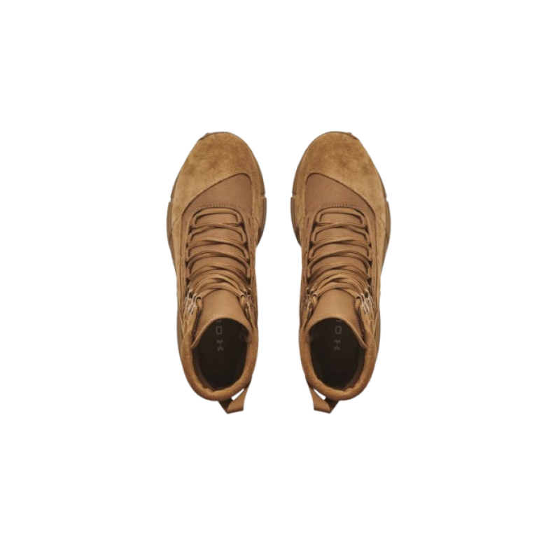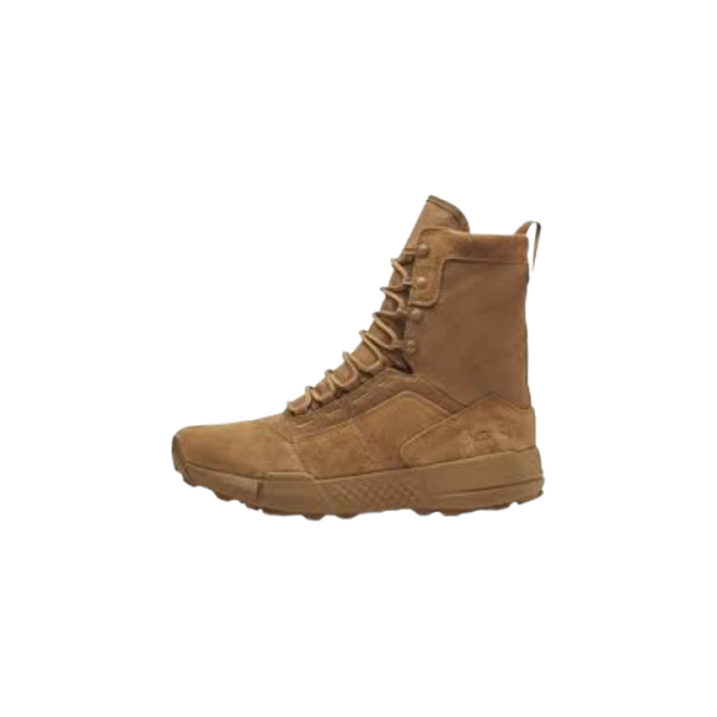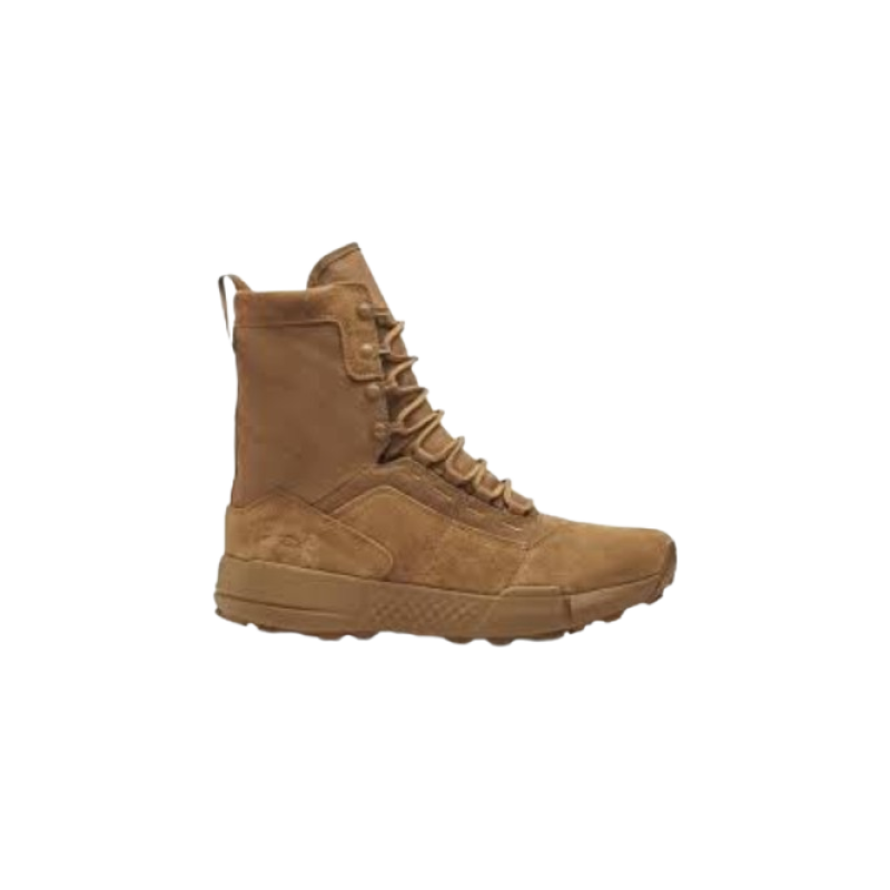 The Under Armour UA 8" Tactical Boots are waterproof and versatile, with a durable leather and nylon upper, breathable membrane, and easy on/off design. The Ortholite PU footbed and Charged Cushioning midsole provide long-lasting comfort and support, while the fast-rope compatible arch and Vibram Litebase TC4+ outsole offer durability and lightweight performance.