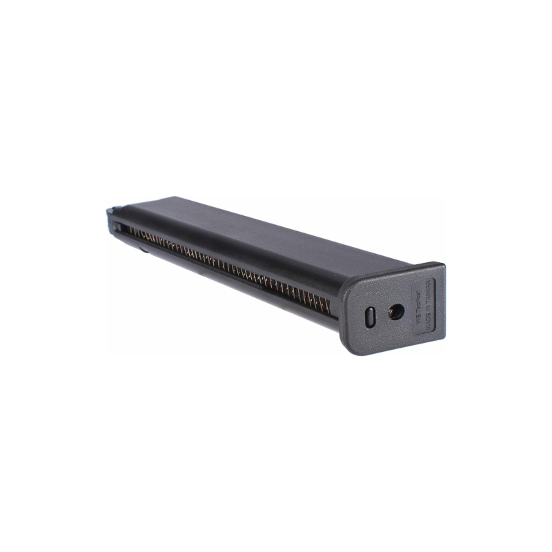 Specifications | Capacity: 25 rounds Material: Metal with polymer base Color: Black Compatible with: WE Glock 17 series Feeding System: Gas-powered Weight: Approx. 120g |